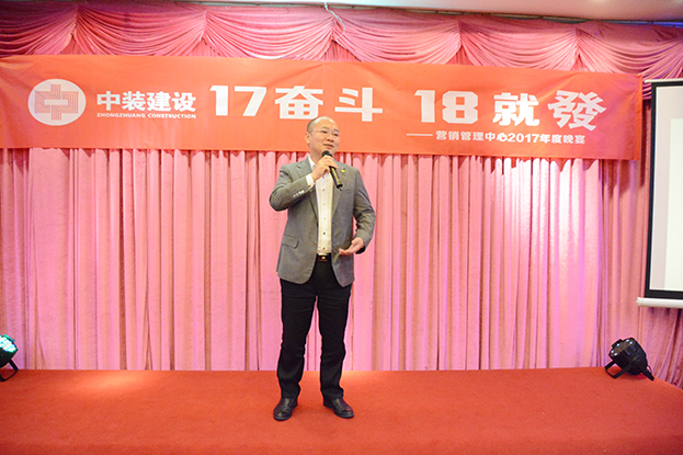 晚会伊始,中装建设营销管理中心总经理董网生以“17奋斗、18就发”为主题做营销管理中心年度经营管理工作报告。董总指出,经过多年的市场拓展和总结,结合公司上市一年来的跨越,集团战略版图愈加清晰,市场资源整合效果显著,经营管理工作高效务实。2018年,营销管理中心将充分把握宏观环境变化和市场发展态势,以公司总体战略规划为蓝图,进一步优化整体业务结构和收益贡献,与各区域运营中心一起初步实现公司百亿企业目标。